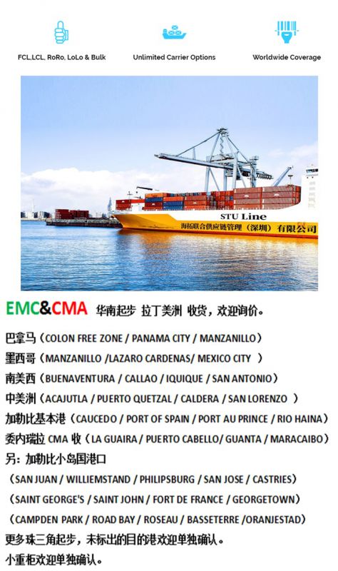 我司在整个中南美,加勒比海,墨西哥,巴拿马地区 有广布各大小港口的代理公司,拥有无船承运人资格,